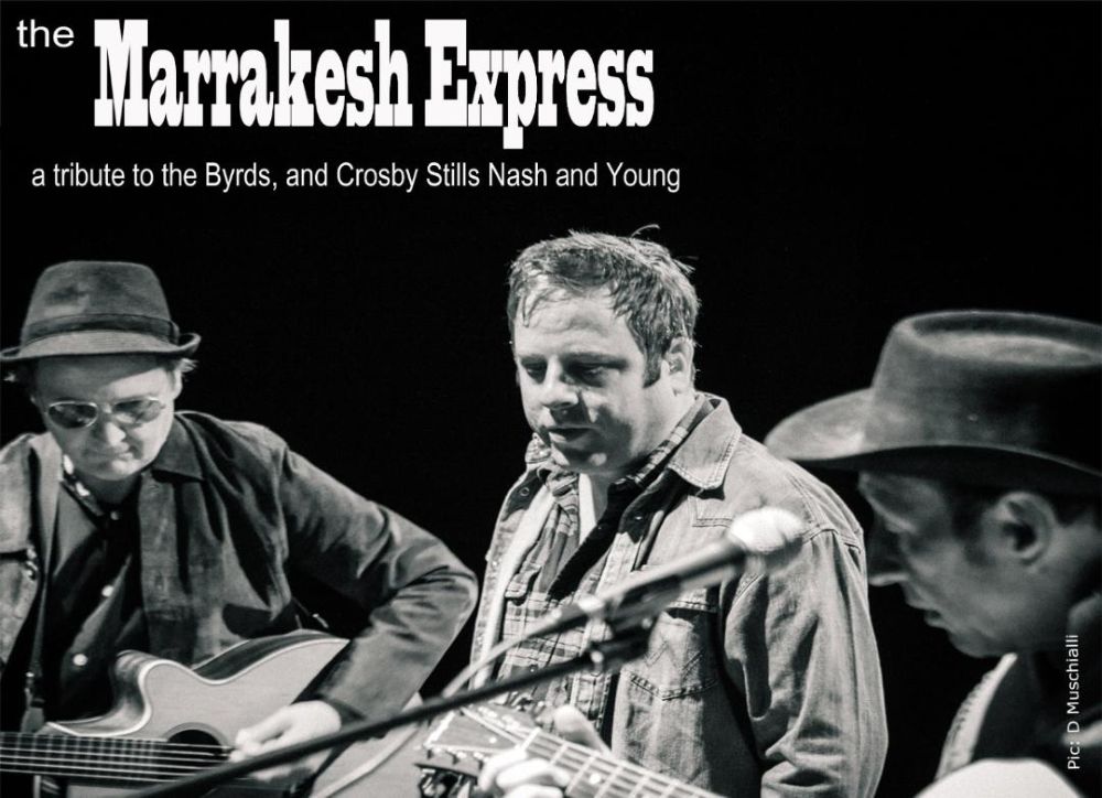 The Marrakesh Express are a truly unique live act, recreating an iconic period in music with stunning vocal harmonies, psychedelic guitar and authentic acoustic grooves. All the classics are here! Expect big hits such as "Suite Judy Blue Eyes", "Our House", and "Helplessly Hoping", as well as songs from all three men's original acts – The Byrds, Buffalo Springfield and The Hollies.